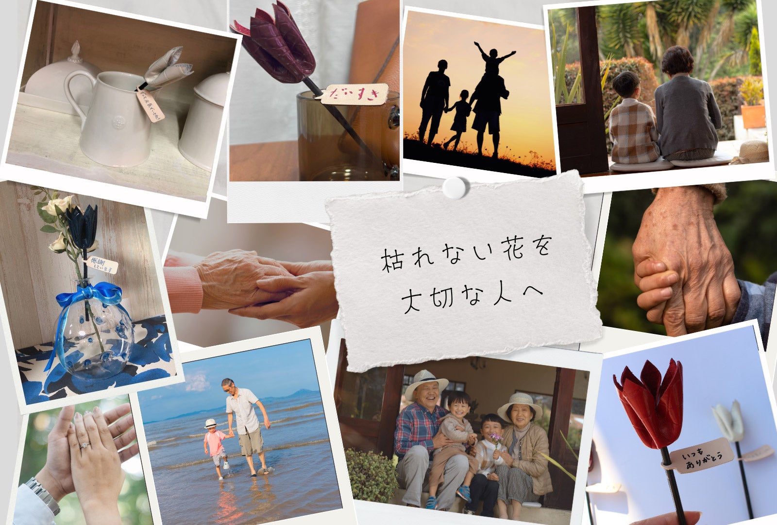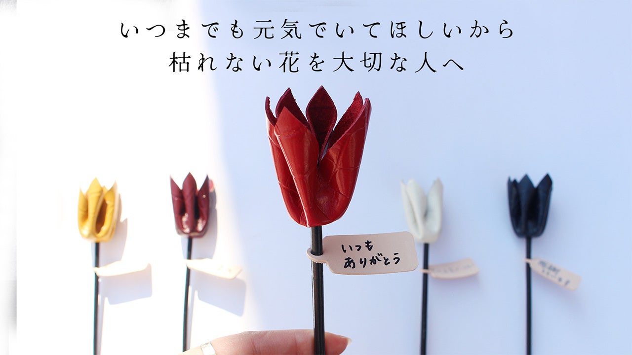 【ご予約開始】枯れない花を大切な人へ「革の花」賀寿祝いや記念日、母の日ギフトにも「いつまでも元気でいてほしい」願いを込めて、枯れない花を大切な人へ。