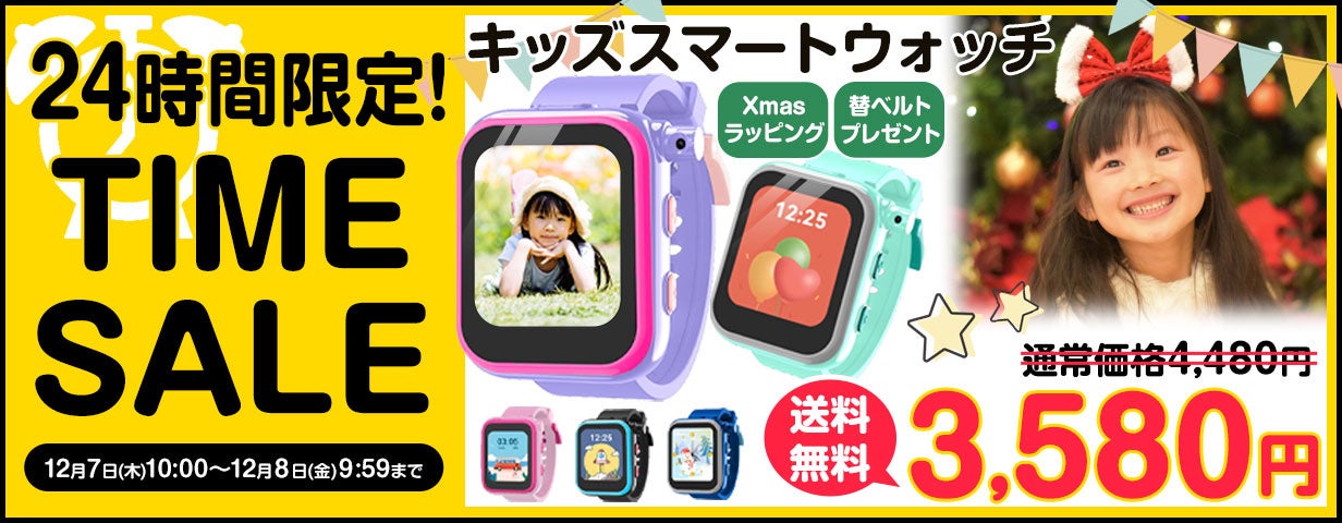 【新発売&タイムセール開催】24時間限定タイムセール12/7(木)10時スタート!早くも子供へのクリスマスプレゼントに大人気!遊びながら学べる『キッズスマートウォッチ』が販売開始!