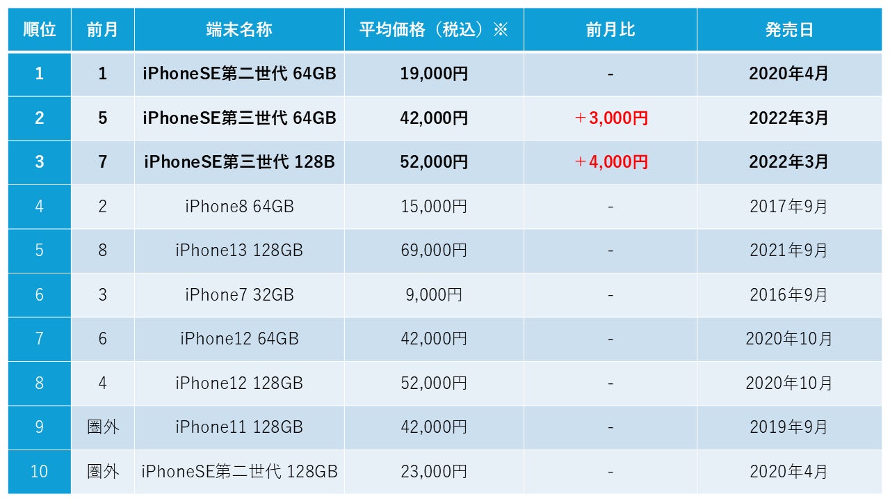 SE第4世代の未発表を受けて中古iPhoneSEシリーズが好調