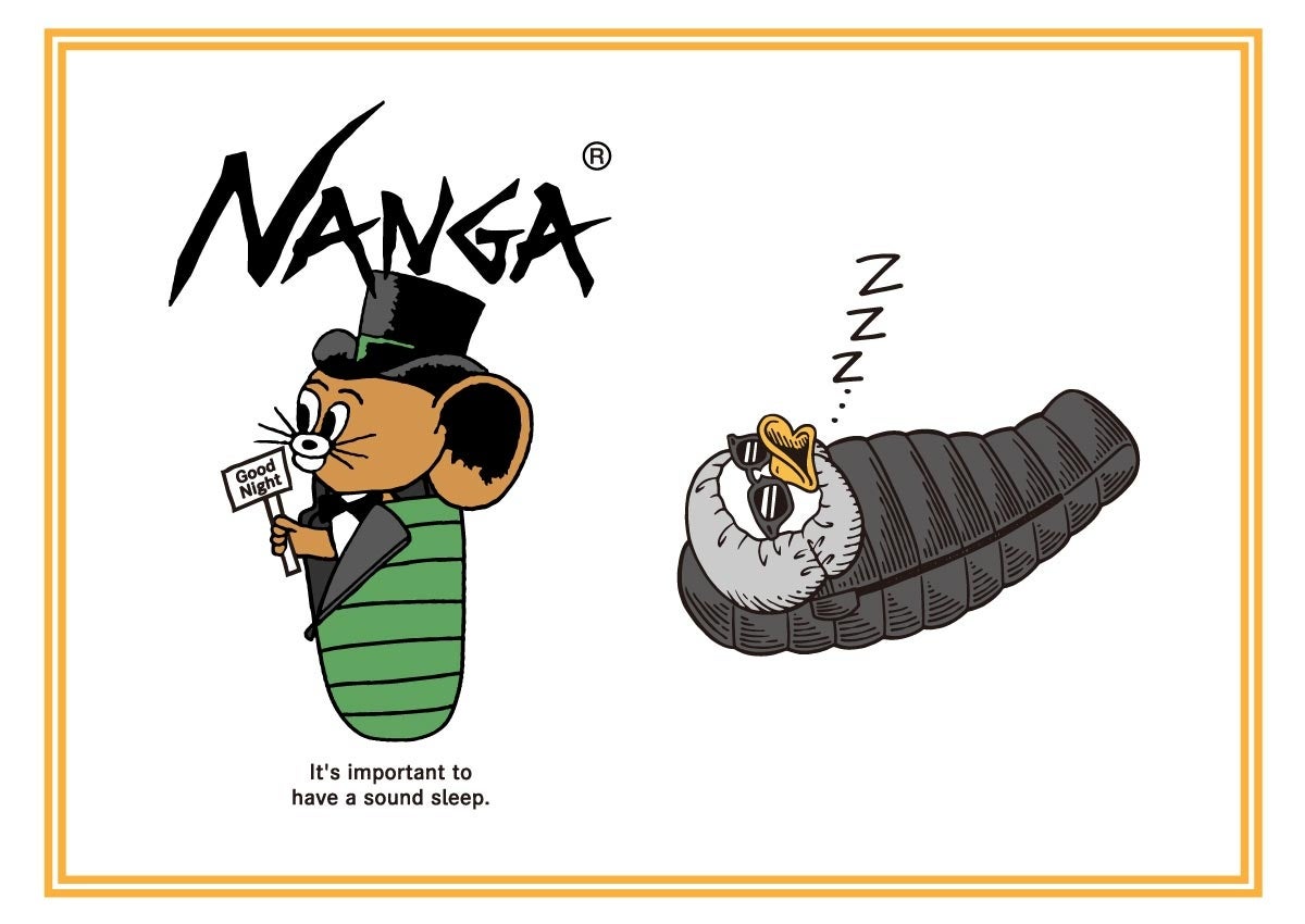 ジェリー鵜飼氏の描く「スリーピングジェリーマルケスくん」とNANGAのマスコットキャラクター「GAAACY」が寝袋に入ったキュートなデザイン。