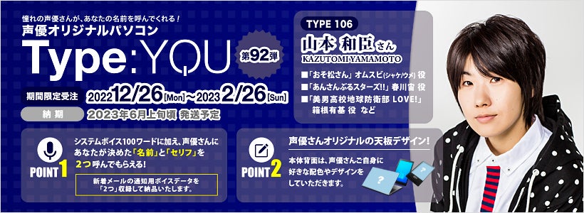 【声優オリジナルパソコン【Type:YOU】第92弾 商品ラインナップについて】