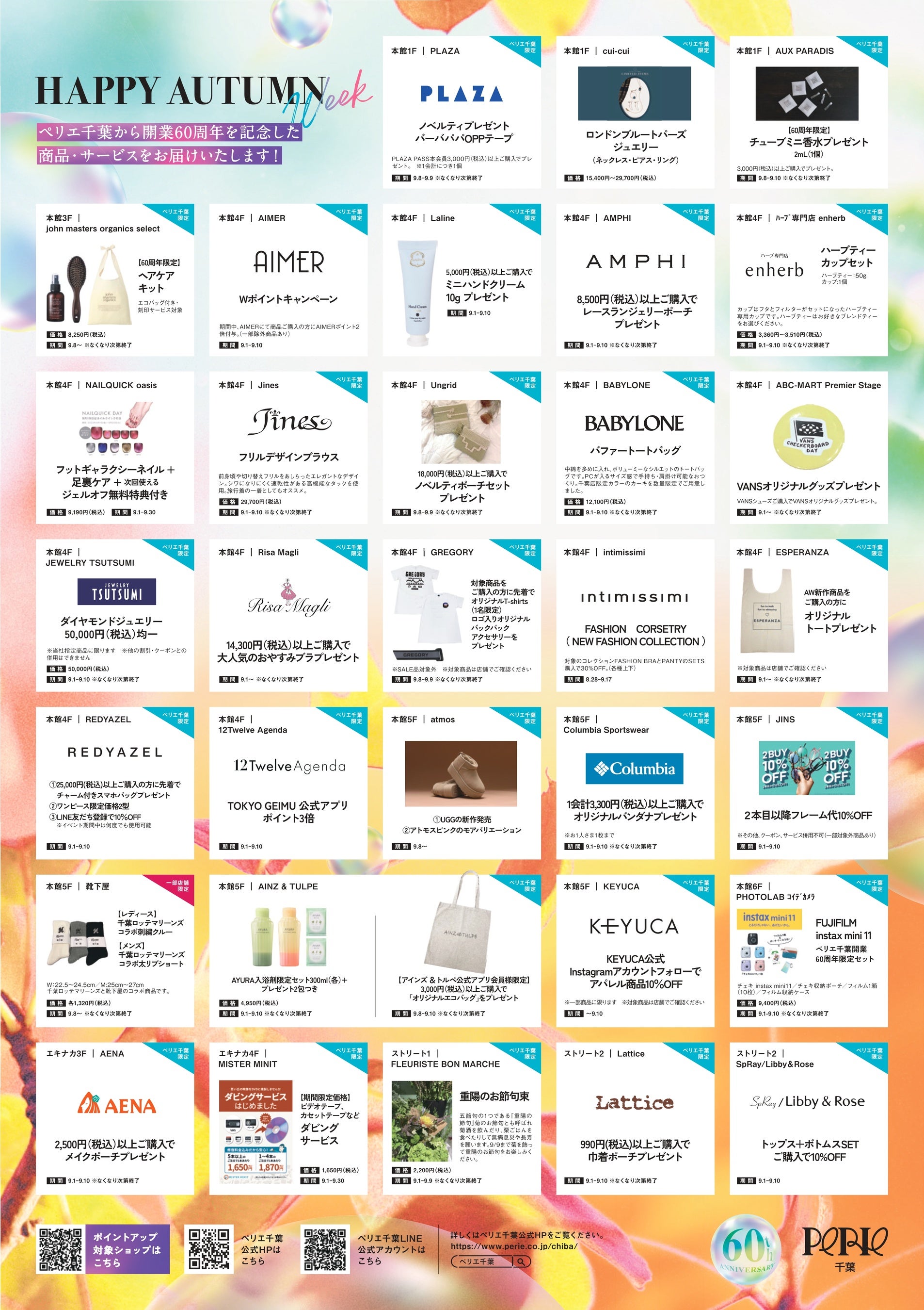 ・内容:ペリエ千葉館内アパレル・雑貨・コスメ・サービスショップ約45ショップにて、開業60周年及び