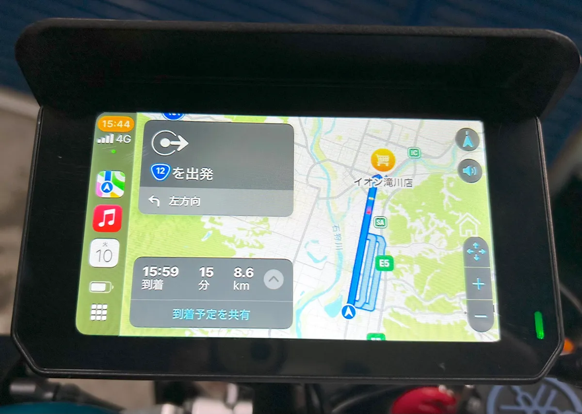 スマホとのワイヤレス連携で、GoogleMapや音楽再生を大画面で操作可能。スマホをバイクの振動から守ります。