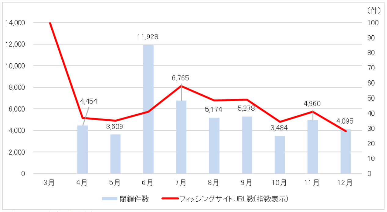 【図表3:フィッシングサイトURL数・閉鎖件数の推移】