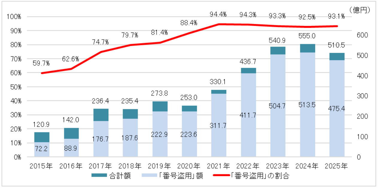 【図表1:クレジットカード不正利用被害の発生状況の推移】