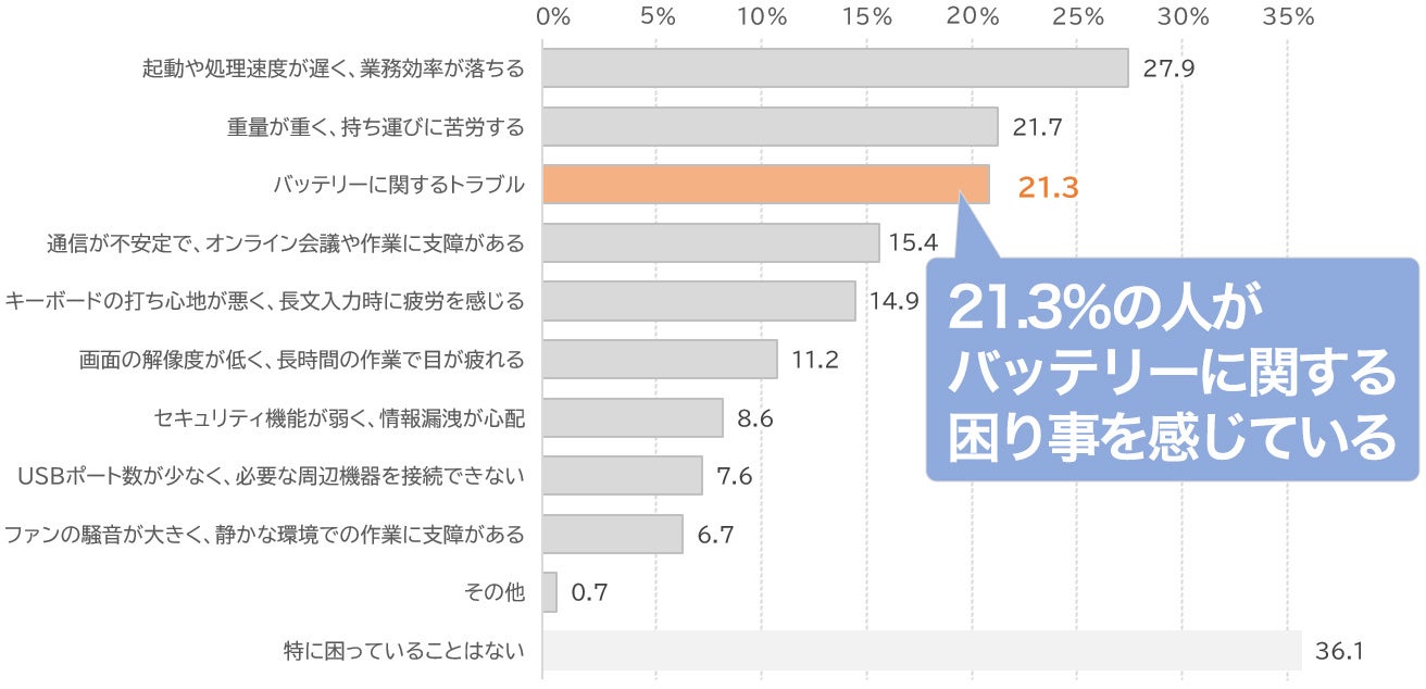 2.5年以上利用すると…業務用ノートPCの課題は「起動や処理速度の遅さ」と「バッテリー」