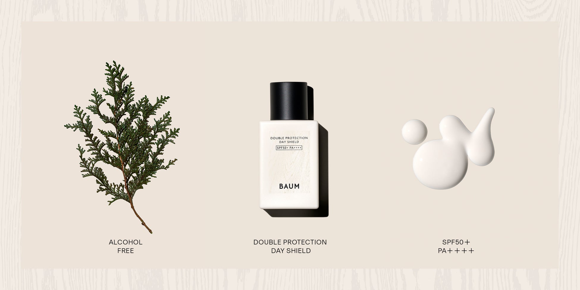 この課題に対し、新たな技術の開発に取り組み、4年の歳月を経てSPF50+、PA++++、UV耐水性★を達成。さらにアルコール(エタノール)フリー化を叶え、べたつきや白浮きなどの使用性も改善した上で、香りもリニューアル。爽やかでグリーンなひのきの生木の香り特徴を軸にした、BAUMらしいナチュラル UV プロテクターが誕生しました。