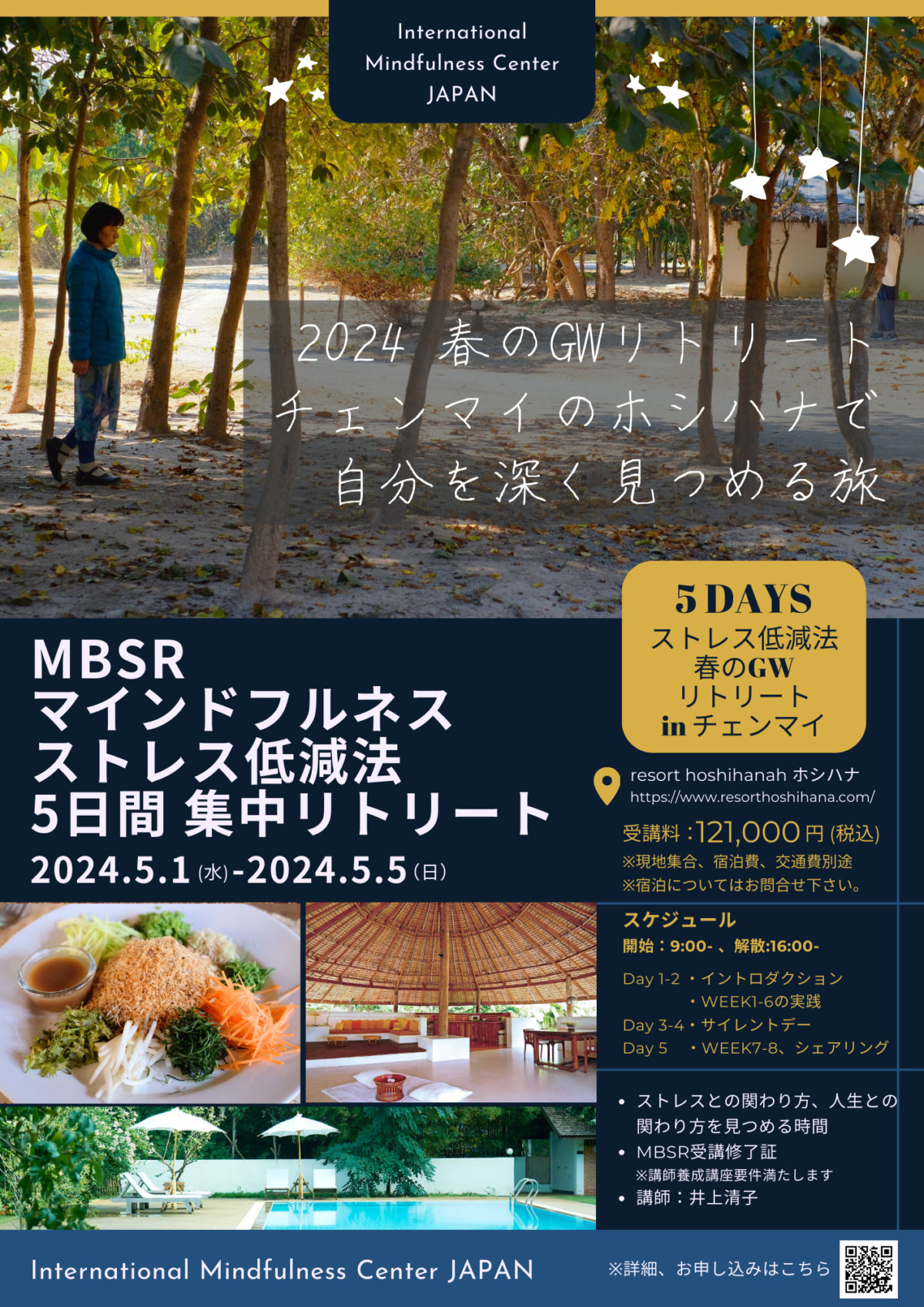 【ゴールデンウィーク開催!チェンマイリトリート】MBSRマインドフルネスストレス低減法5日間集中講座(2024年5月1日~2024年5月5日)