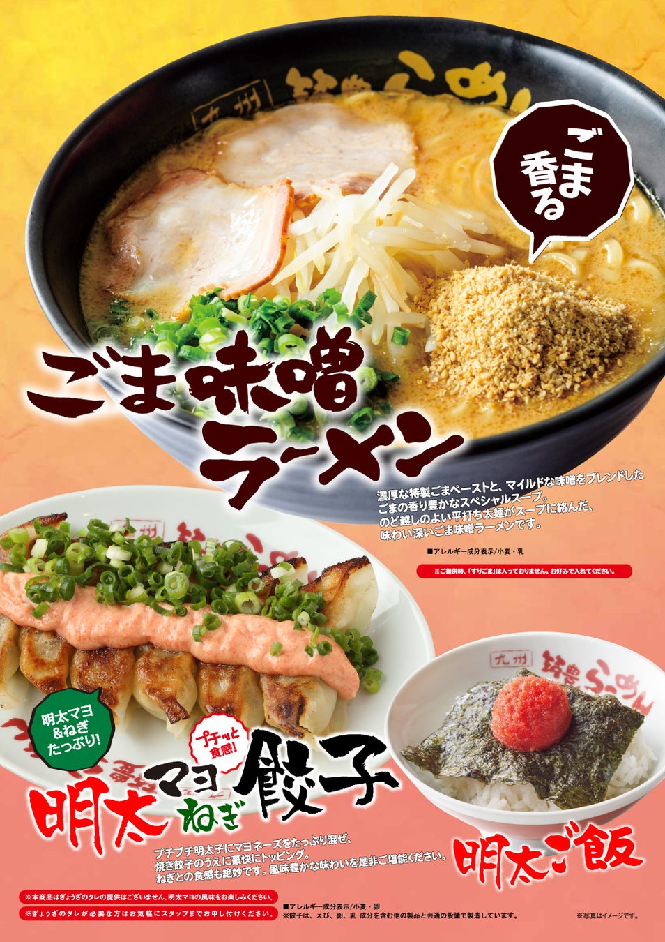 九州筑豊ラーメングループ春季限定「ごま味噌ラーメン「明太マヨねぎ餃子」販売開始