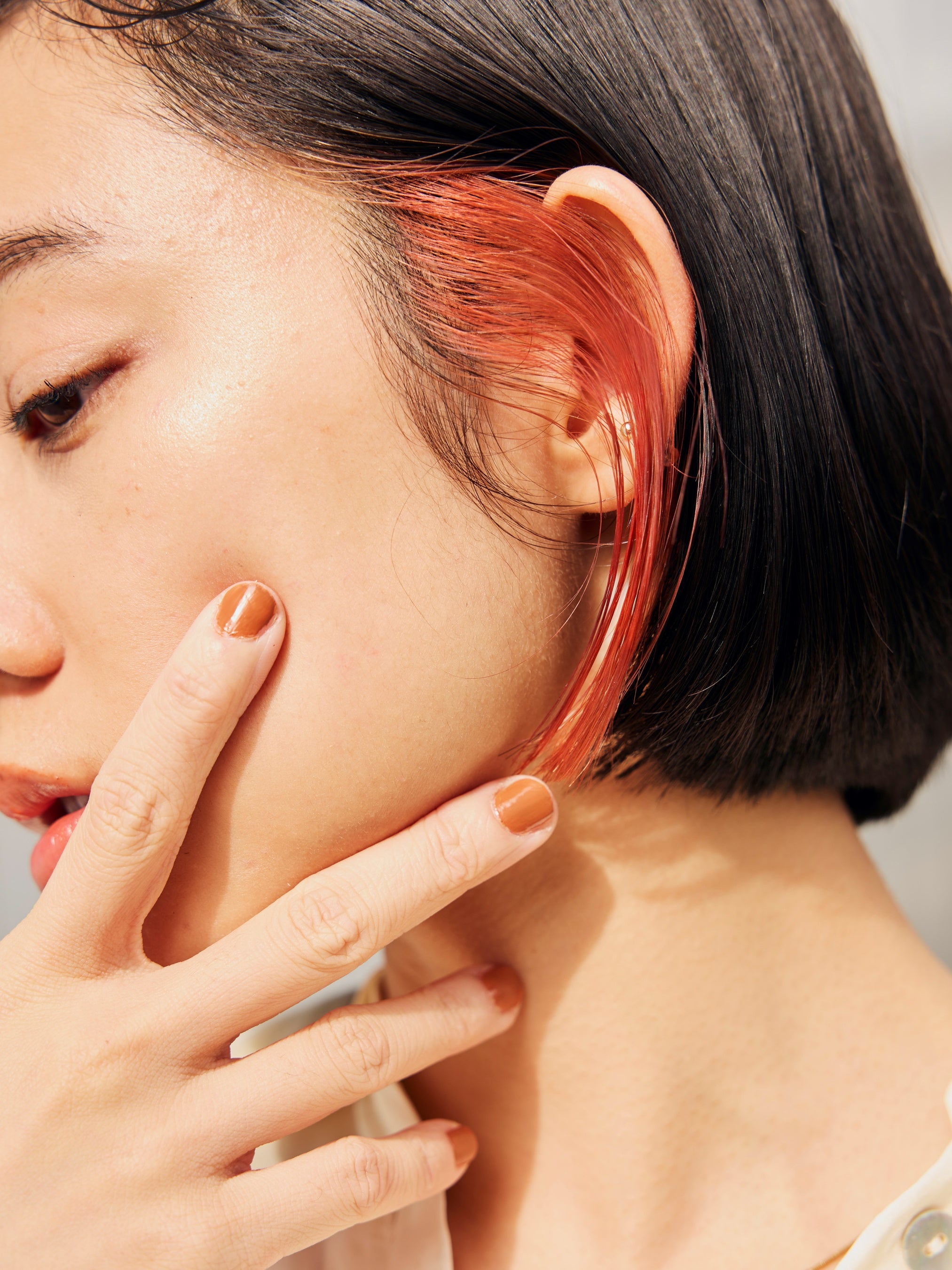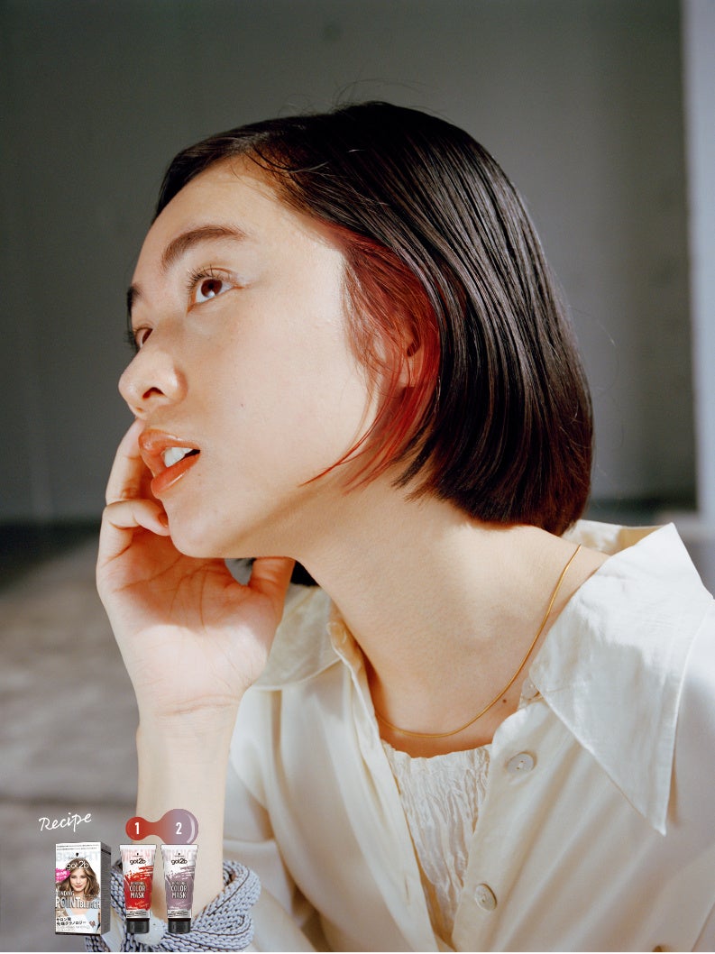 暖色はアジア人には馴染みやすい色みなので、初めてポイントカラーに挑戦する方にはとくにおすすめ。片側だけに入れるのも◎。