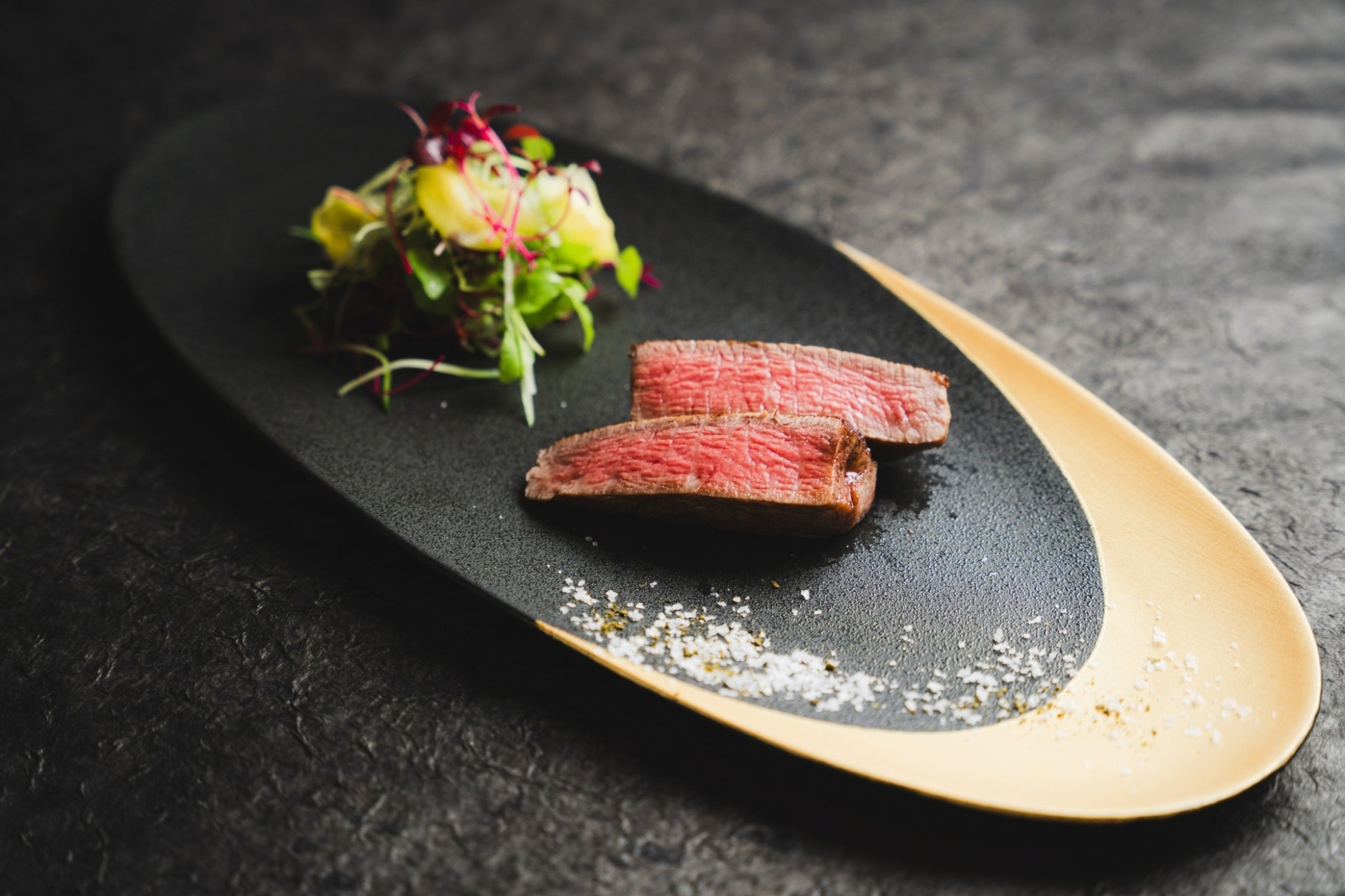 ◆九州黒毛和牛ヒレ肉のステーキ~四川ハーブのサラダと青山椒塩~