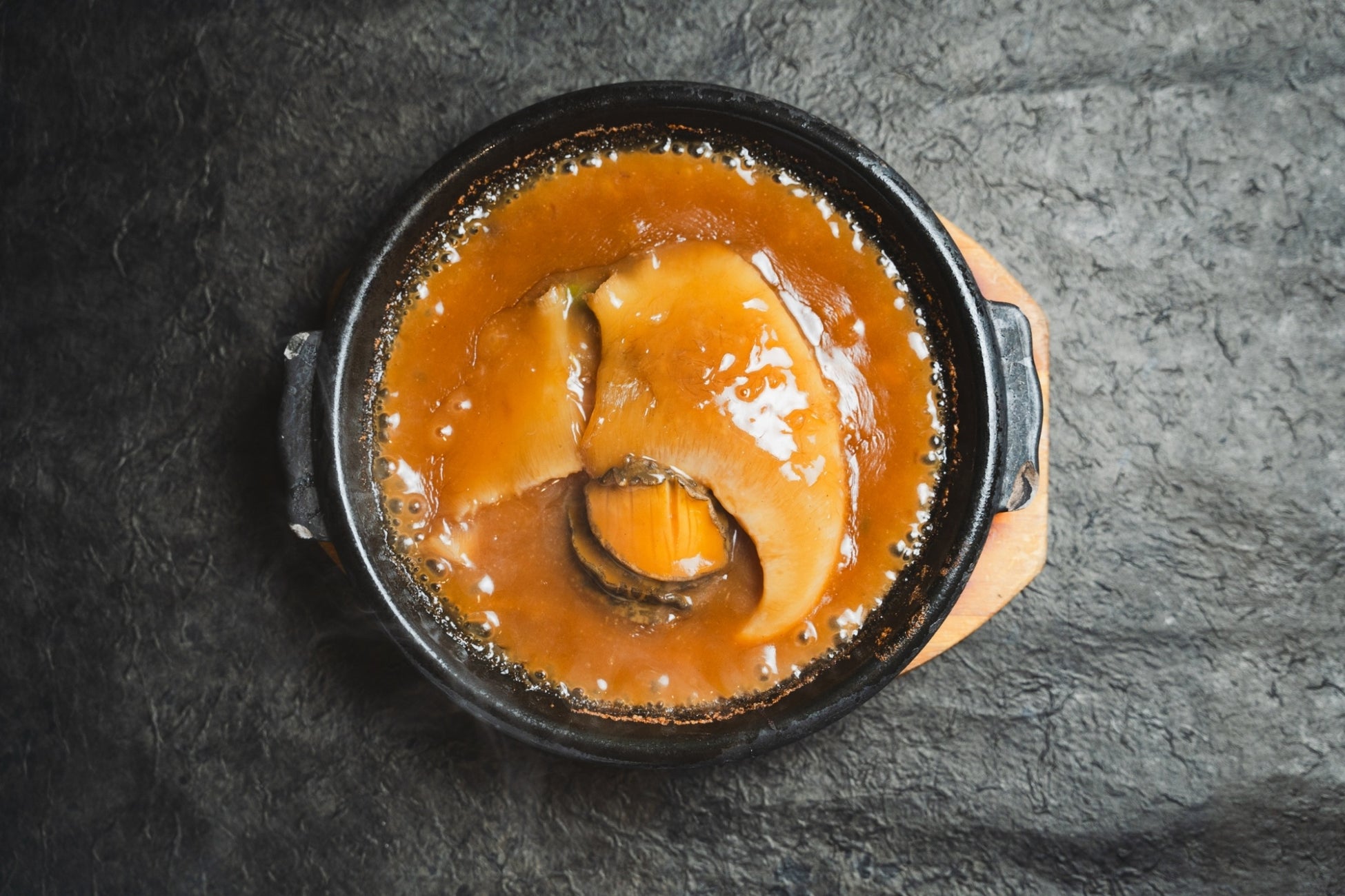 フカヒレの姿煮と鮑を一緒に煮込んだ見た目にも華やかでインパクトがある一皿。モウカザメは繊維が太く食べ応えもあるため、コースの最後にふさわしく満足感が得られます。