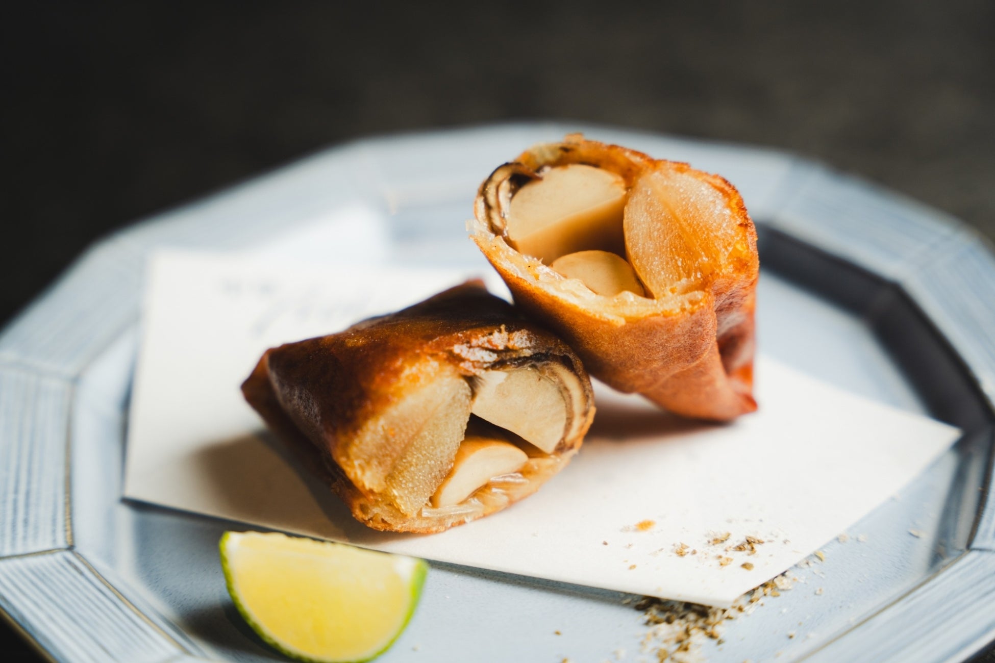 モウカザメとマツタケを贅沢にたっぷりと包み込んだ春巻き。