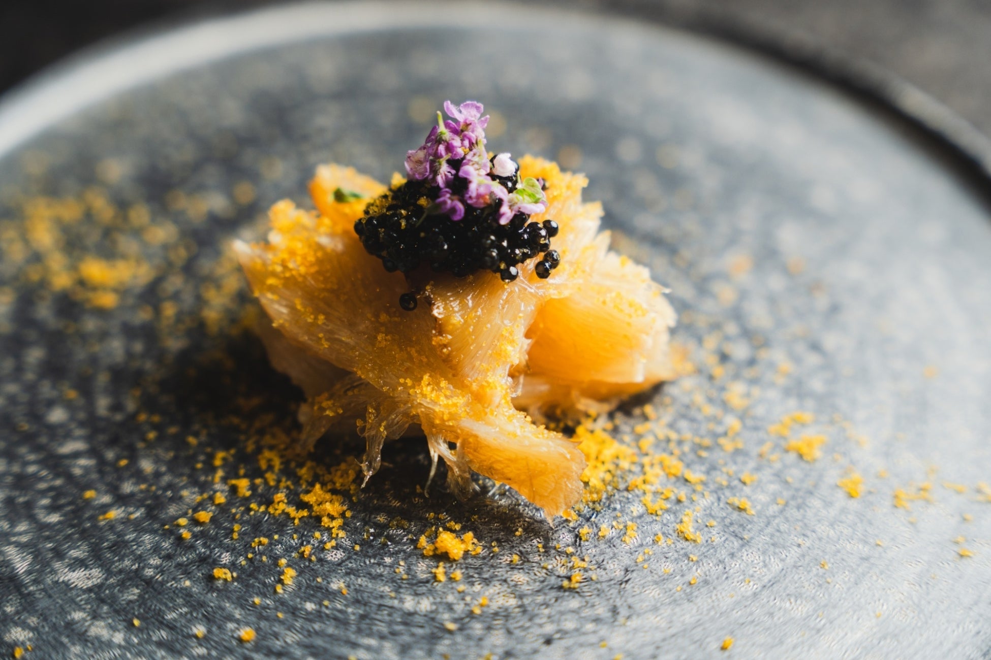 ◆毛鹿鮫のフカヒレとキャビアとカラスミの和物