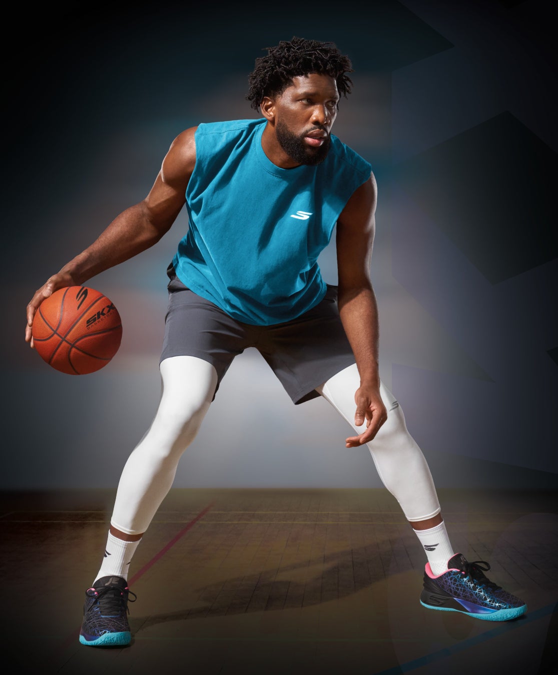 ジョエル・エンビードは、スケッチャーズ バスケットボールの契約選手の一人です。契約選手には他に、ジュリアス・ランドル、OG・アヌノビー、ノーマン・パウエル、アイザイア・ハーテンシュタイン、テレンス・マン、ジャバリ・ウォーカー、ジョシュ・グリーンなどのNBAスター選手に加え、リケア・ジャクソン、キキ・イリアフェン、そして2025年WNBAチャンピオンのジャッキー・ヤングらが名を連ねています。
