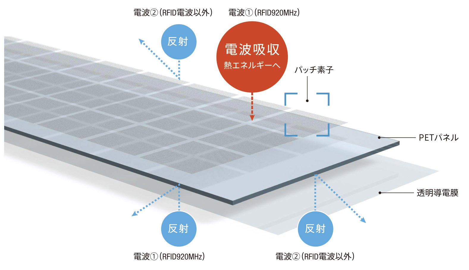しかしその一方で、電波の反射により通信が乱れたり、タグが誤認識されたりするなどの課題がありました。これまでも電波吸収パネルによる対策は存在していましたが、その多くは不透明な素材であったため、作業者の視界を妨ぐ、監視カメラの死角を生むといった新たな課題を引き起こしていました。