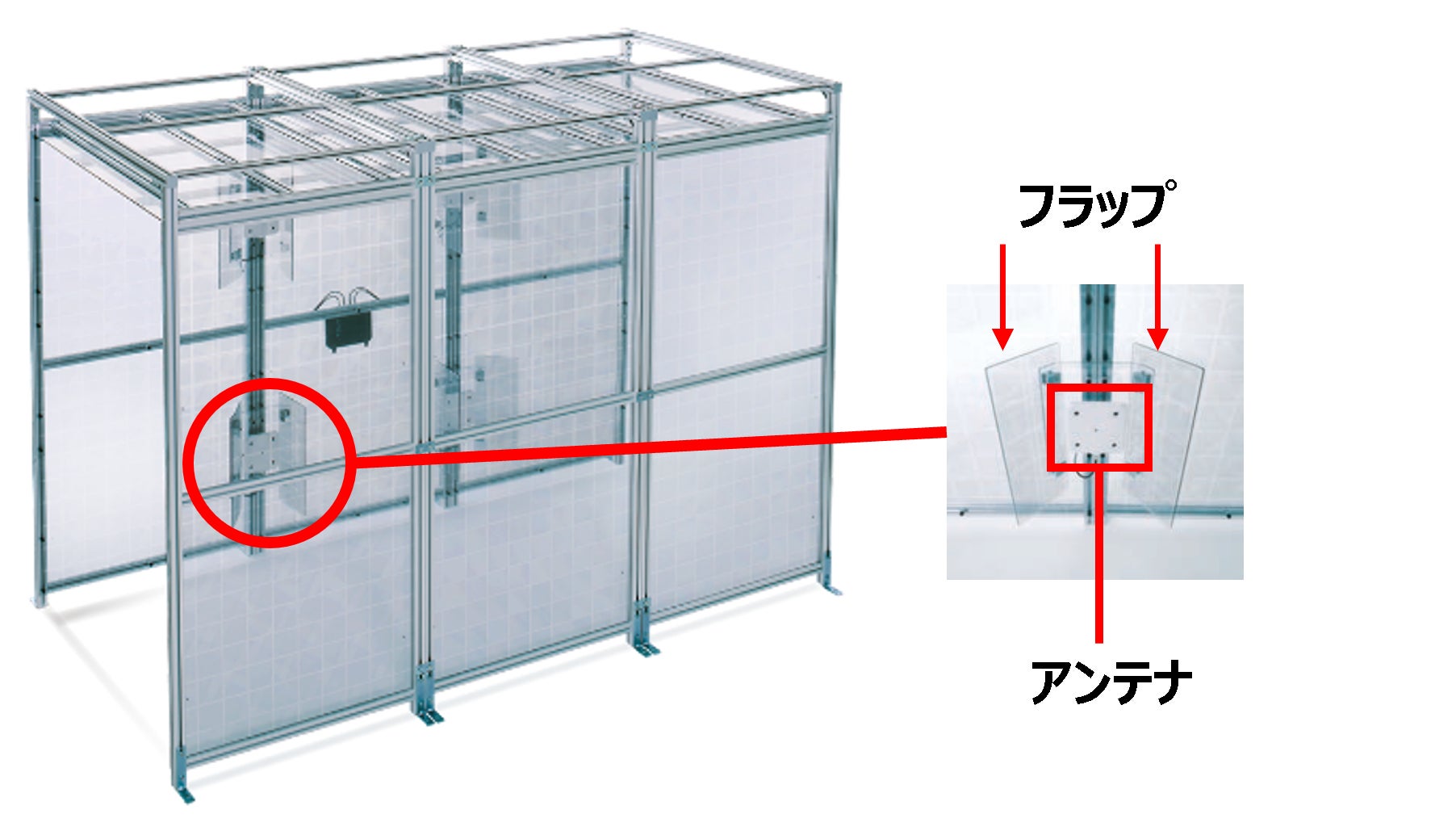 フラップをアンテナの横に配置することで透明電波吸収パネルの角度を自由に変更し、読み取りエリアを制御可能に
