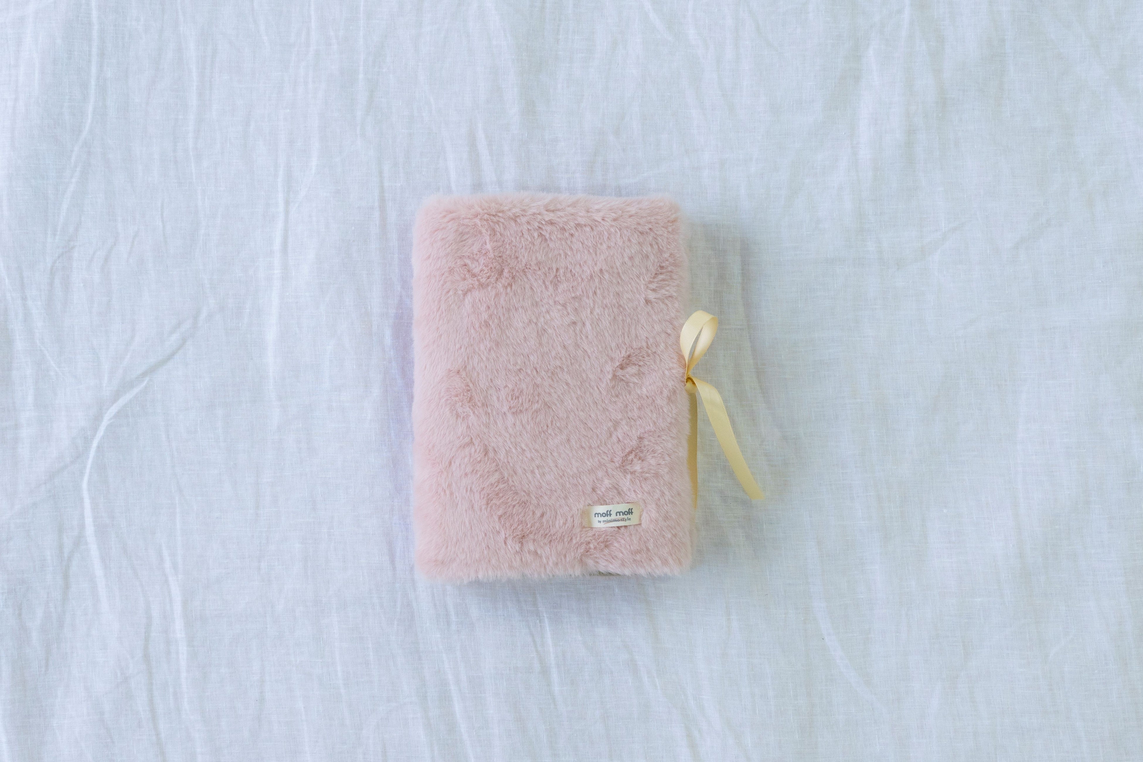 リボンを結んで二つ折りにでき、コンパクトに持ち運びができます。