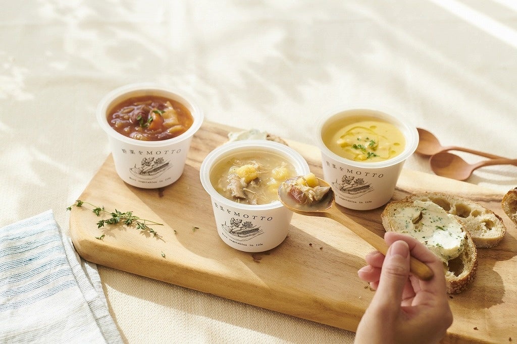 野菜をMOTTO ベジMOTTOスープ 「高知産生姜とごろっとさつま芋のもち麦入り蒸し鶏白湯スープ」新発売