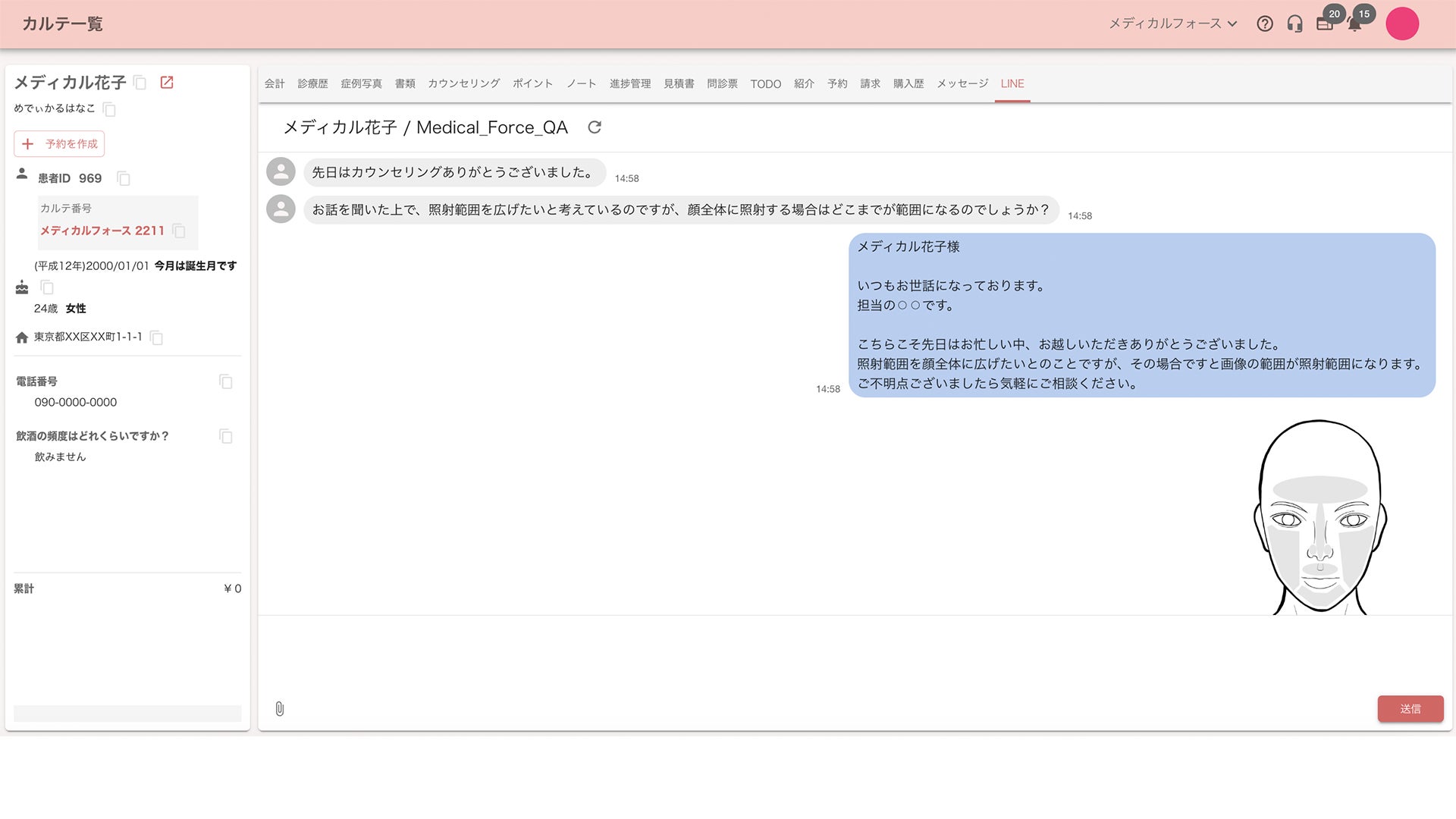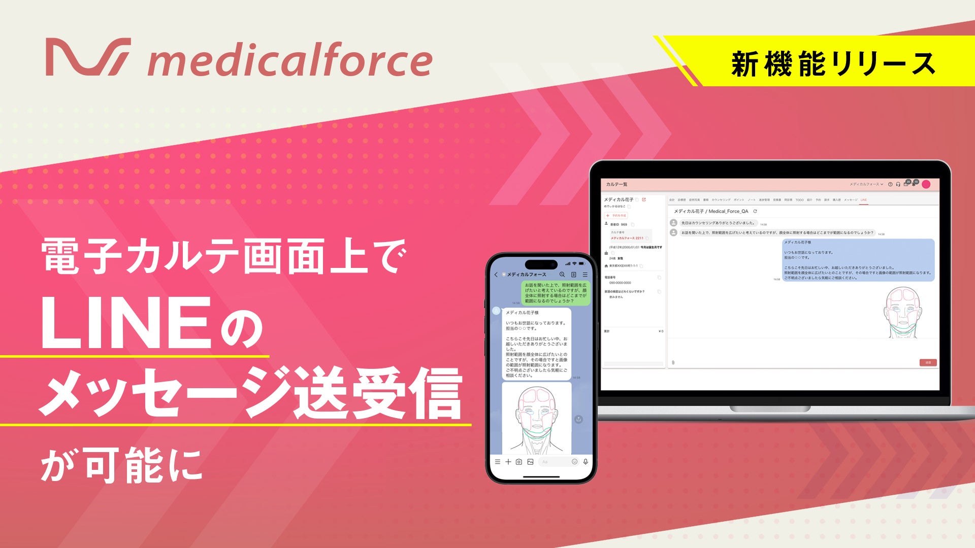 自由診療クリニック向け電子カルテ「medicalforce」、電子カルテ画面上でLINEのメッセージ送受信ができる新機能をリリース