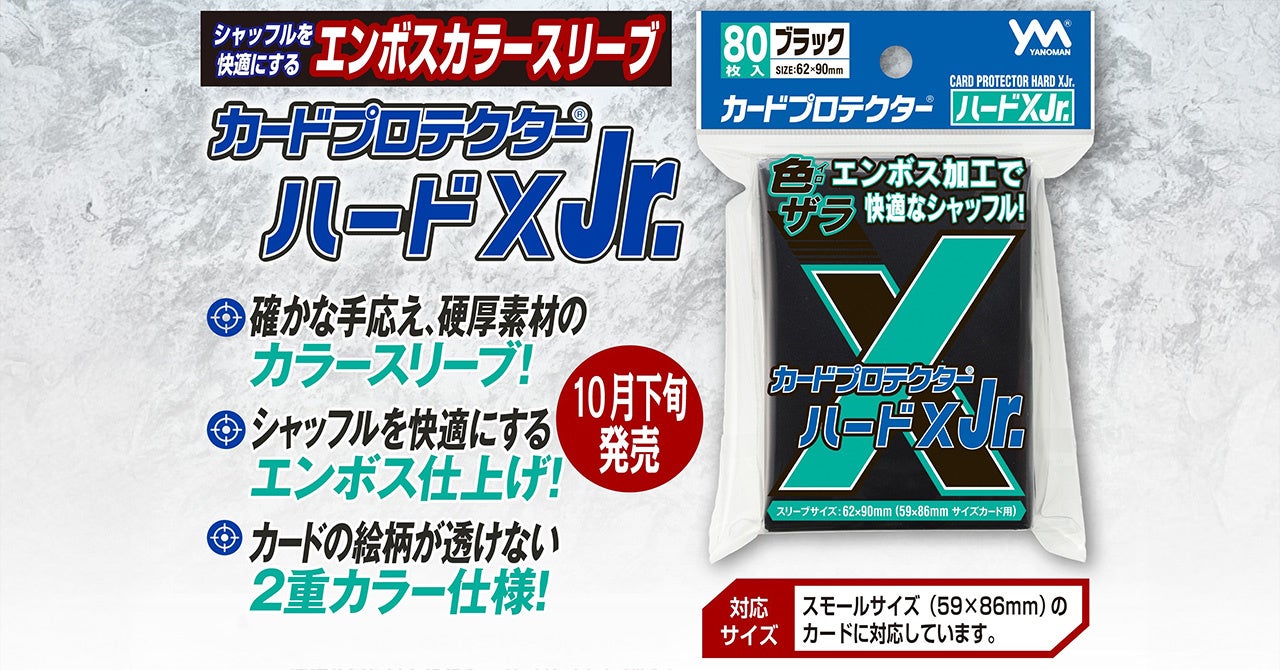 カードのシャッフルを快適にするエンボスカラースリーブ「カードプロテクター🄬 ハードX Jr.」が株式会社やのまんから2025年10月下旬に発売!