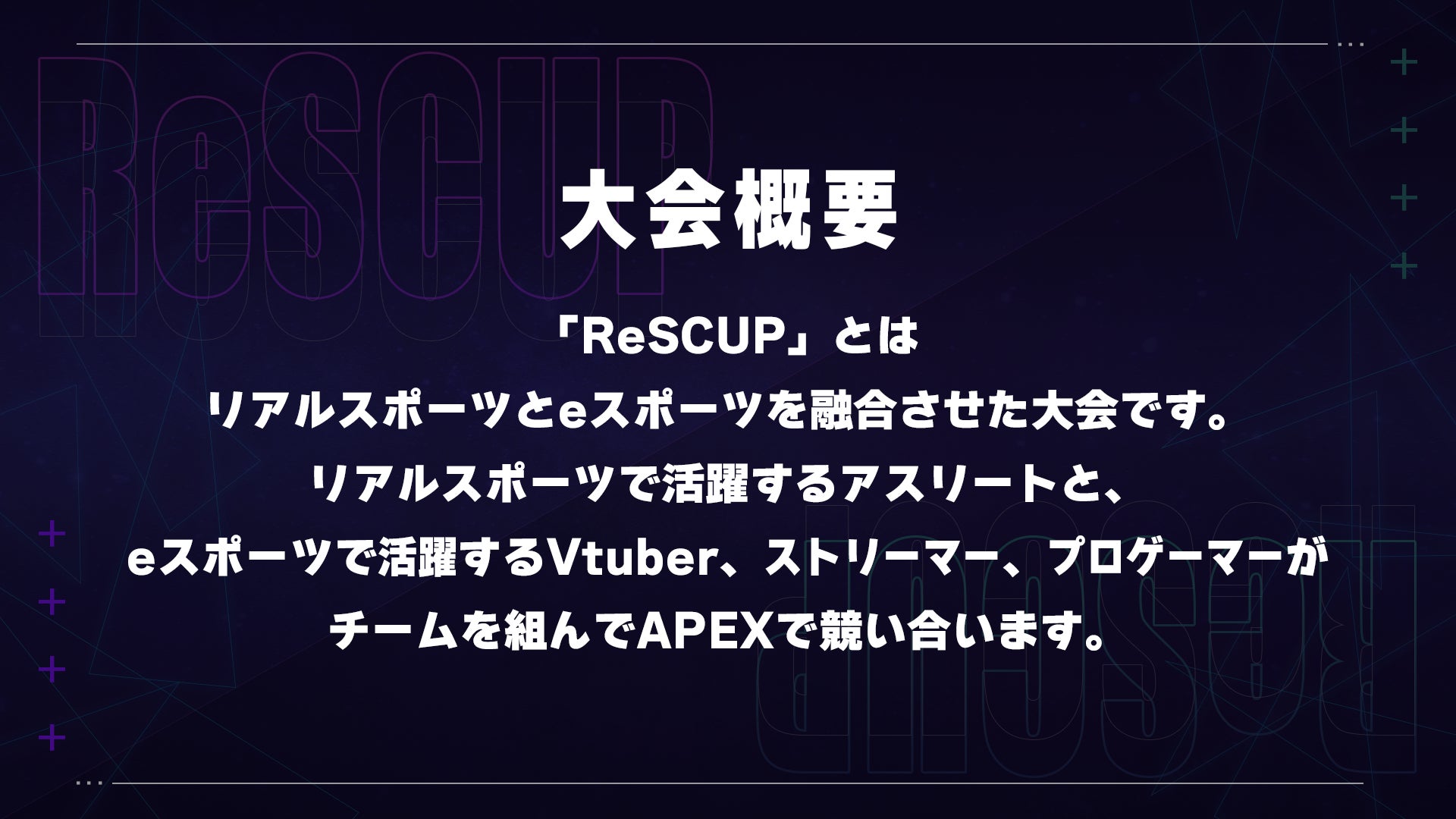 BリーガーやVリーガーをはじめとしたアスリート達とVチューバー・ストリーマー・プロゲーマーがチームを組んでAPEX LEGENDSで競い合い順位を決める大会です。