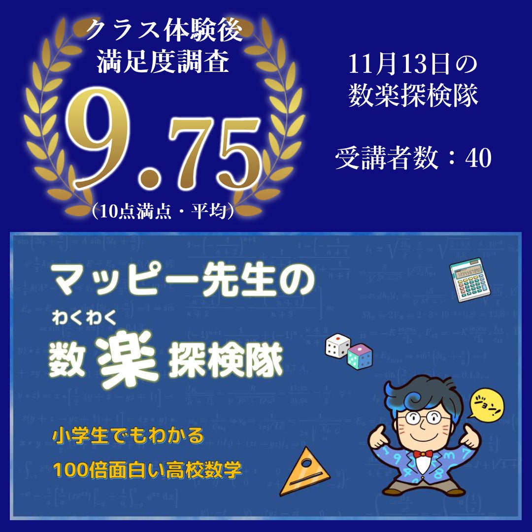 スコラボ内でマッピー先生が別で開講している、中学・高校の数学の考え方を小学生でもわかりやすく楽しく学べる有償のクラス「数"楽"探検隊」は、11月開始分の募集枠40名が満席となるほどの大人気クラス!