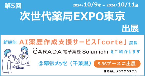~クラウド電子薬歴『CARADA 電子薬歴 Solamichi』の展示とAI薬歴作成支援サービス「corte」の体験会を実施~