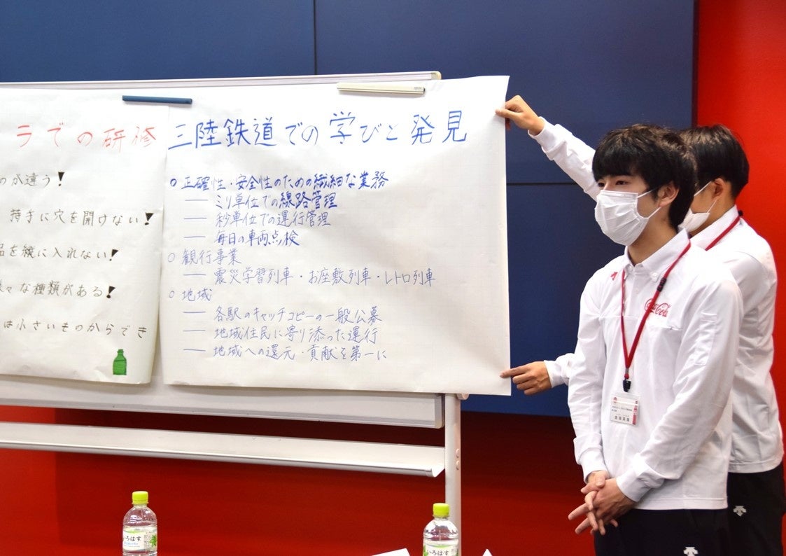 みちのくコカ・コーラボトリング株式会社(本社: 岩手県盛岡市、代表取締役社長:谷村 広和、以下当社)は、三陸鉄道株式会社(本社: 岩手県宮古市、代表取締役社長: 石川義晃、以下「三陸鉄道」)と協働して、新入社員合同研修を実施いたしました。
