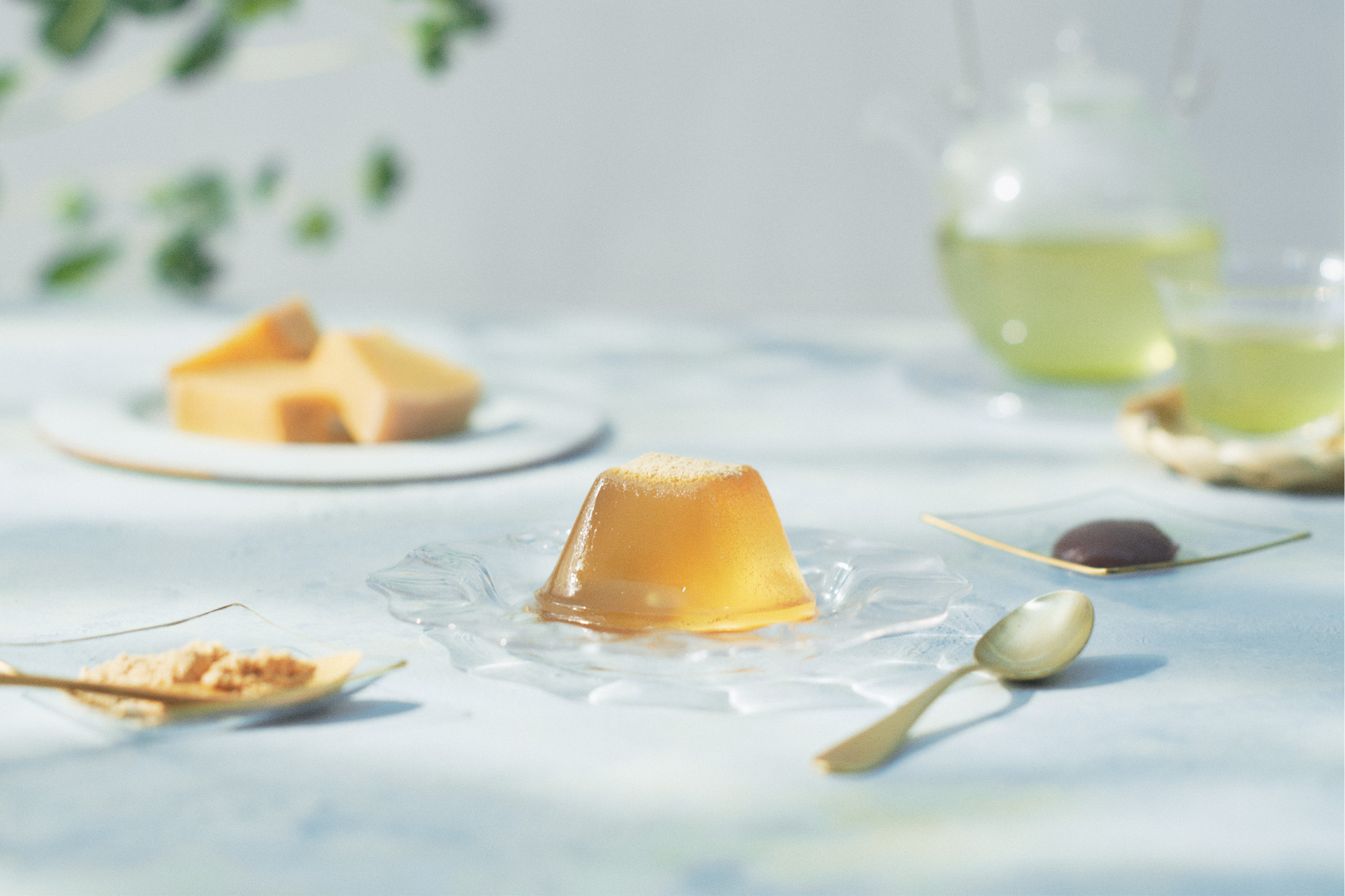 沖縄産の本和香糖を使ったコクのあるまろやかな甘味と、熟練の職人が手がけたみずみずしい食感が特長です。国産きな粉と共に添えるのは、黒蜜ではなく北海道産小豆のこし餡。“新感覚”の味わいの変化もお楽しみいただけます。