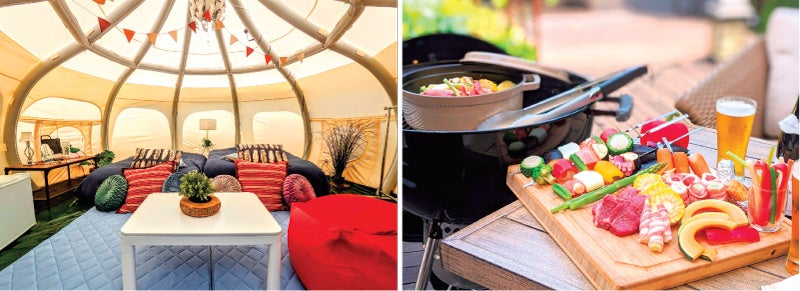 ホテルクリスタルパレスのグランピングサイト「グランピングヴィラひたちなか」では、リニューアルしたサイト内のテントに加えホテル内の客室や施設もご使用できるプランとなっており、天候や気温を気にせずにグランピング初心者の方でも安心してお楽しみになれます。