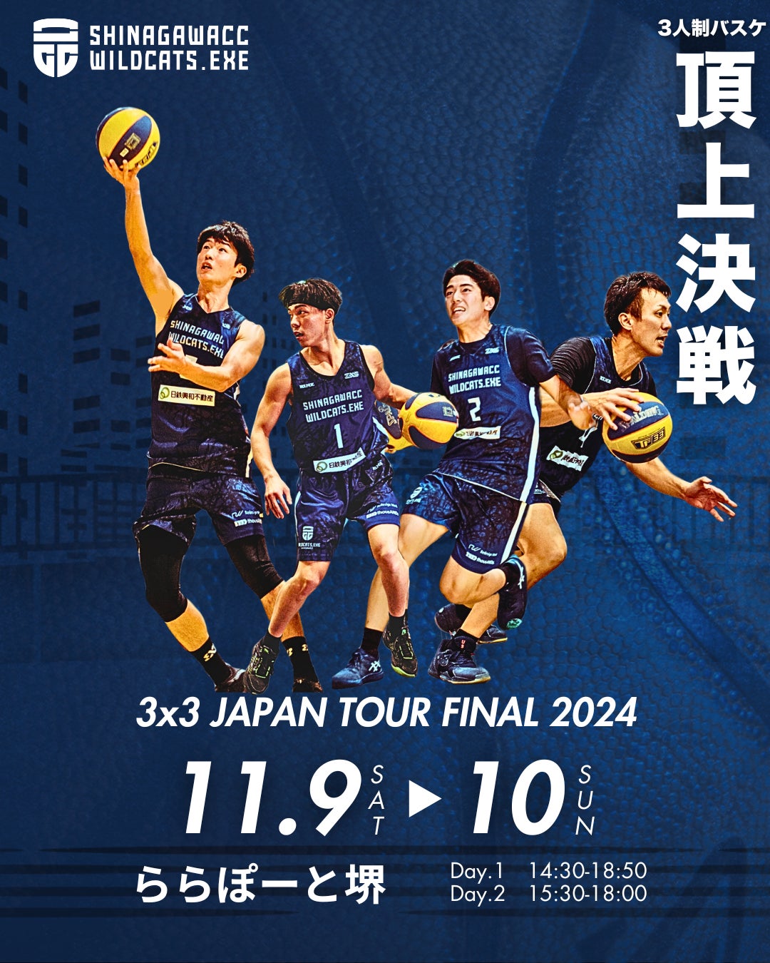 3人制プロバスケットボールリーグ『3x3.EXE PREMIER』『3XS』に所属する「品川CCワイルドキャッツ」(所在地:東京都品川区・港区 代表:遠塚谷 流)は、『三井不動産 3x3 JAPAN TOUR 2024 FINAL』 に出場することが決定しました。