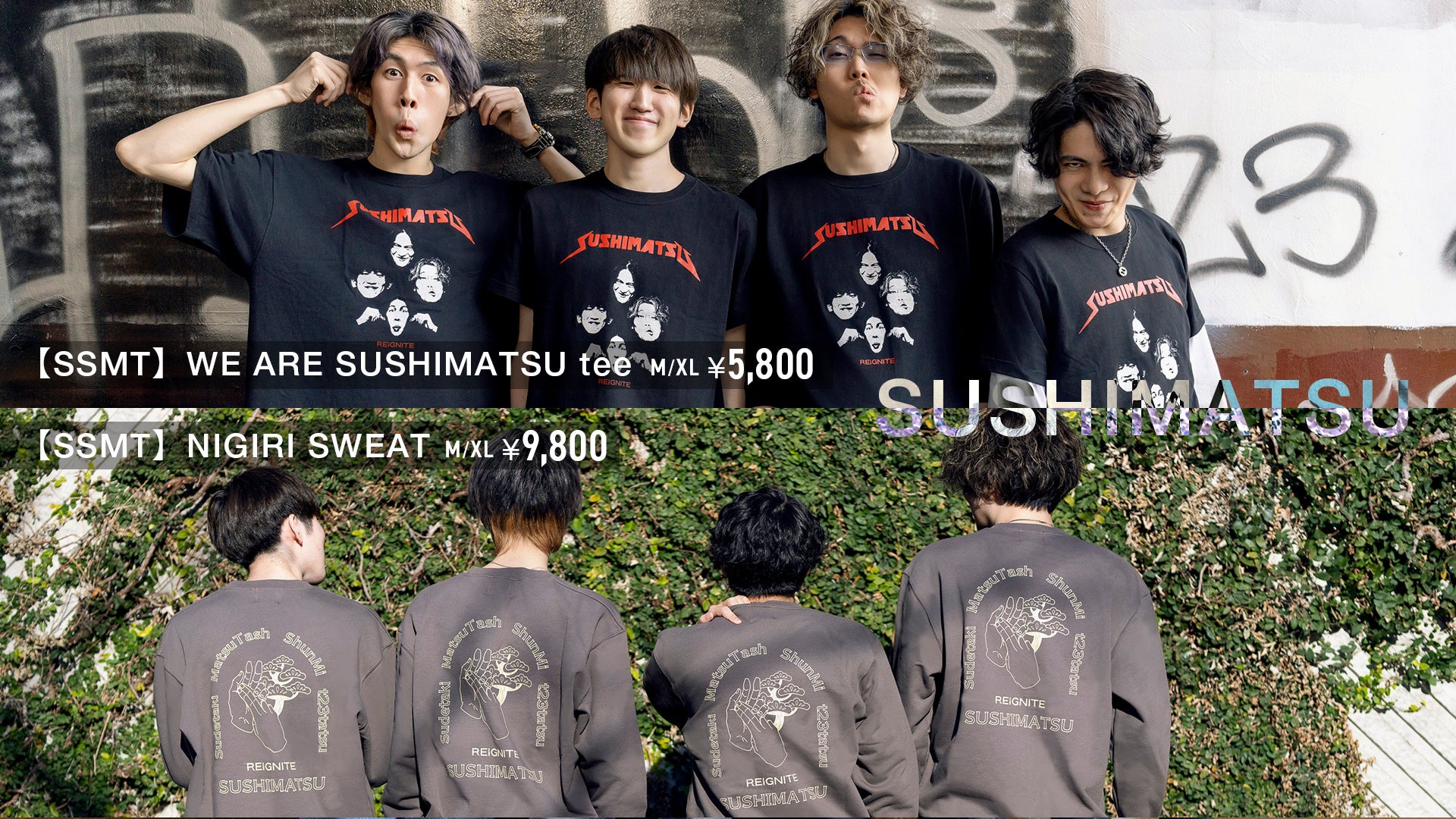 バンドTから着想を得て、『すしまつ』4人のお茶目さをクールに落とし込んだ『【SSMT】WE ARE SUSHIMATSU tee』はサイン色紙代わりにも大人気。