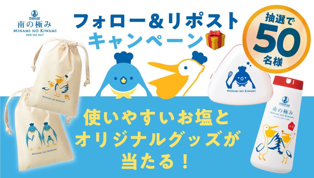 使いやすいさらさらの小粒タイプもあるよ!店頭で見かけるあのお塩【南の極み】のオリジナルグッズと数量限定デザインの商品が当たるXキャンペーン