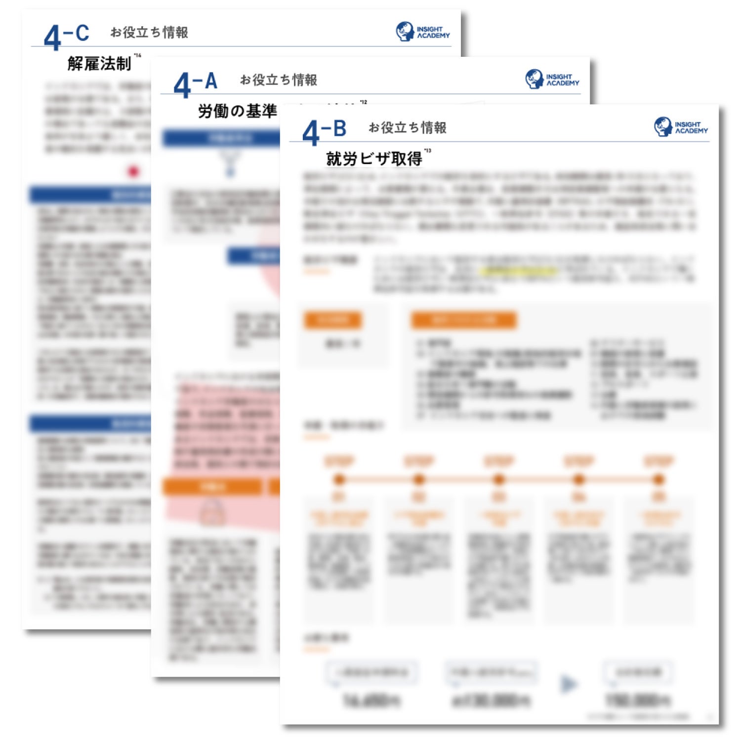 労働の基準となる法律や解雇法制、就労ビザ取得に関する情報を掲載しております。