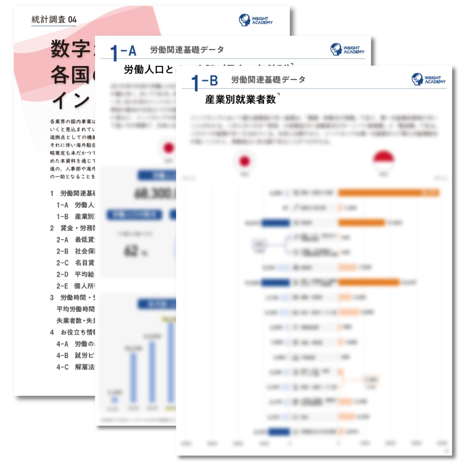 そこでインサイトアカデミー株式会社では、本資料を通じて、海外駐在予定者・海外駐在者にとってはよりよい海外ビジネス推進の、人事や海外事業部の方々にとってはグローバル人材の人員配置や育成計画策定の一助となるよう、「各国の人事・労務」について様々な角度から分かりやすく資料化しました。