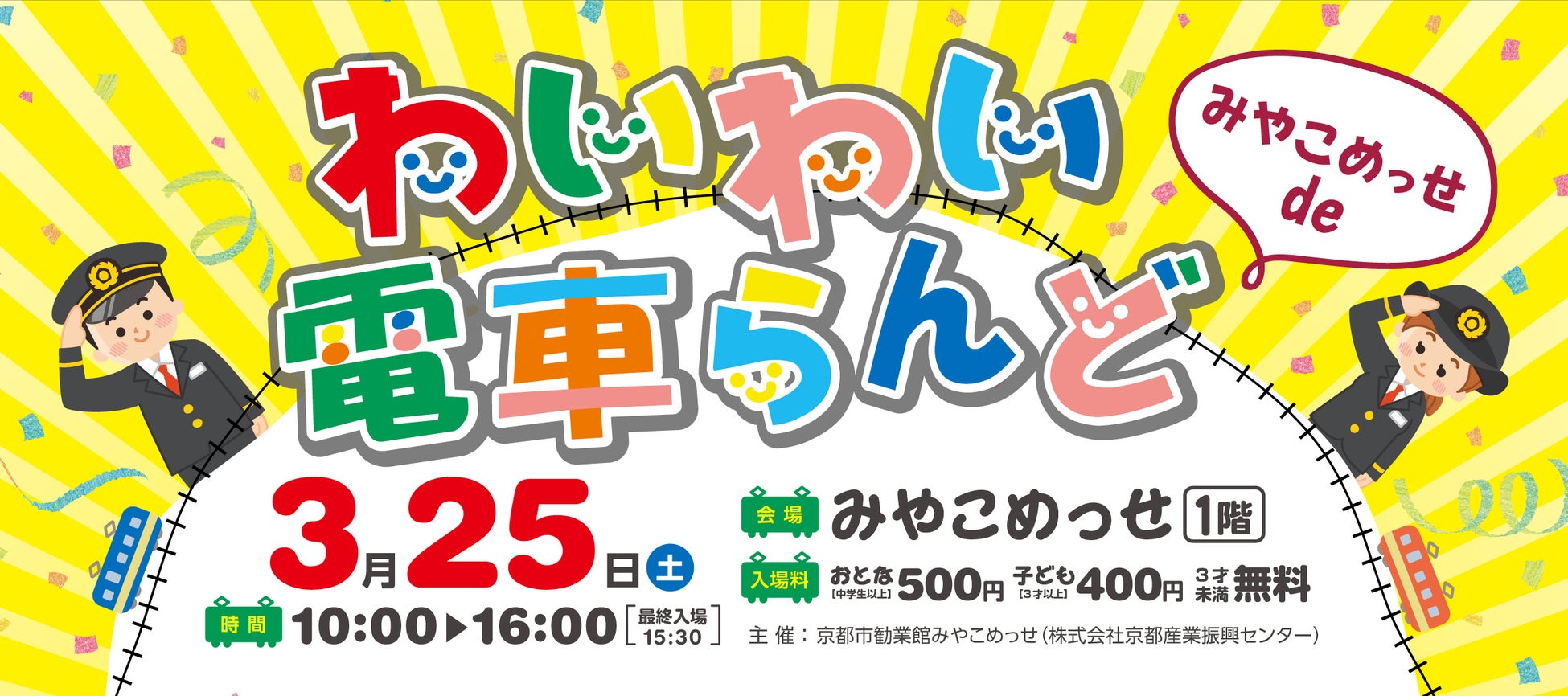 「京都市勧業館みやこめっせ」(所在地:京都市左京区 運営:株式会社京都産業振興センター)では、ファミリー向けの大人気イベント「わいわい電車らんど」を、2023年3月25日(土)に開催いたします。
