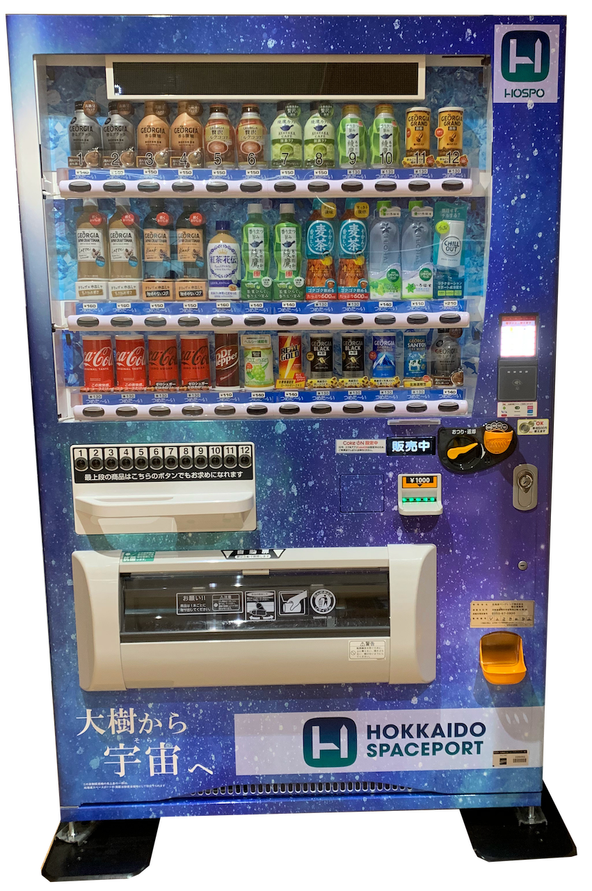 第一弾の取り組みとして、町内の同社既設自販機を「HOSPO 支援自販機」と位置付けていただくとともに、HOSPOオリジナルラッピング自販機を当役場庁舎などに新設いただき、その売上の一部を北海道スペースポートの整備資金としてご寄付いただくことに対し、厚く御礼申し上げます。