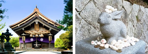 主祭神は「因幡の白兎」の中のヒロインである八上比売命。主祭神に八上比売だけを祀る神社は全国的にも珍しく、縁結びの神社として人気です。