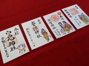 八上比売(やかみひめ)ゆかりの4神社でキャラクターが描かれた御朱印を頒布中(有料)。台紙の裏にあるQRコードから各神社の御朱印風画像がダウンロードでき、全ての画像を集めると達成記念画像がもらえます。目指せ4神社コンプリート!