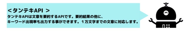 文章要約API「タンテキAPI」仕様書:https://buzzgraph.co.jp/api/pdf/tanteki_api.pdf
