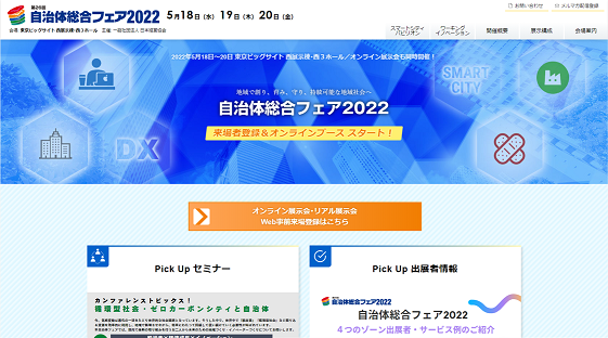 開催に先駆け「自治体総合フェア2022オンライン展示会」にて、来場登録・カンファレンス申込の受付を開始いたしました。
