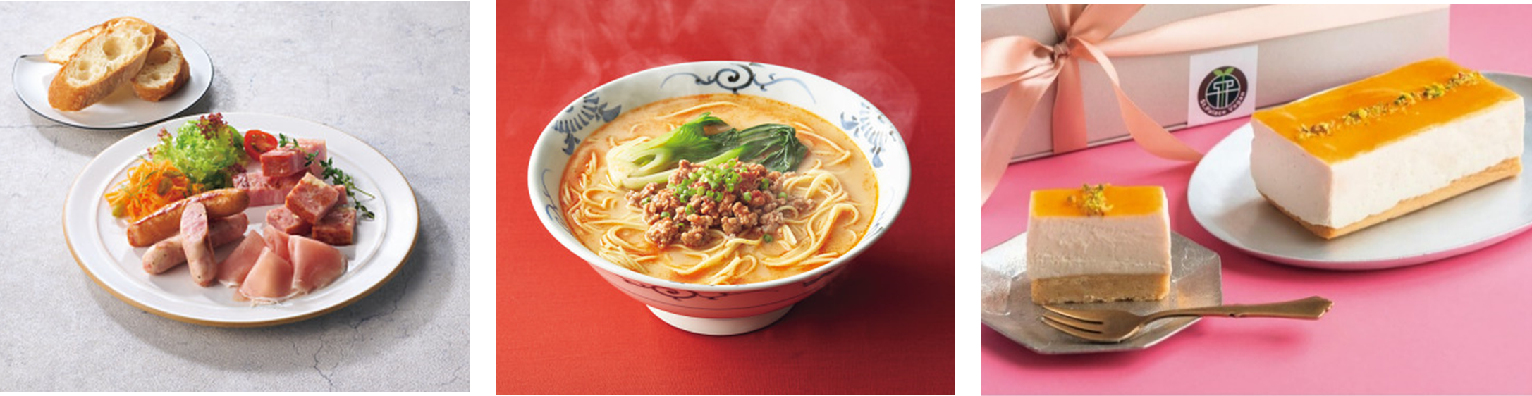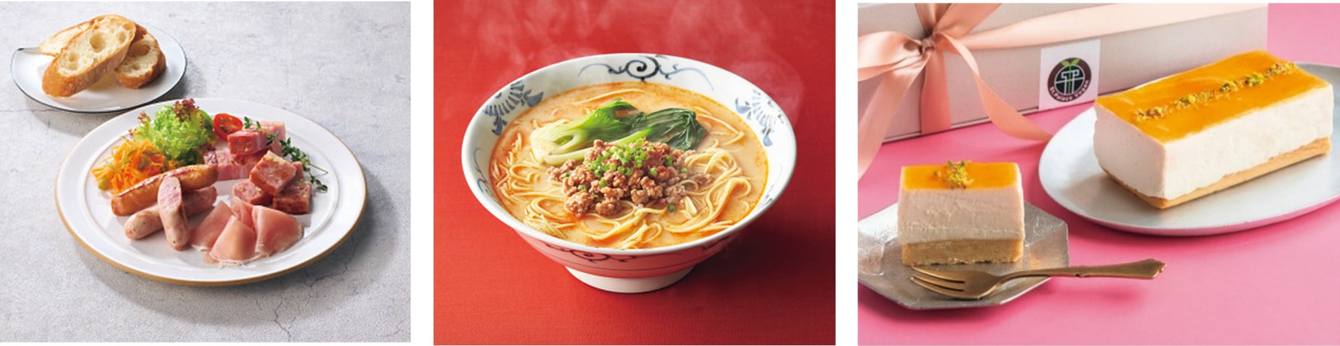 全国各地に展開し、地元を知り尽くすギフトのプロである販売店と協力したギフト商品を開発。静岡で愛され続ける加工肉ブランド御殿場高原のバラエティセットや、九州ラーメンを複数種楽しめるお得セット、信州安曇野の打ちたて生そば、鳥取県産野花梅ジャムを使用した卵・乳製品不使用のヴィーガンチーズケーキなど、地域の特産品から選び抜かれた逸品を集めました。
