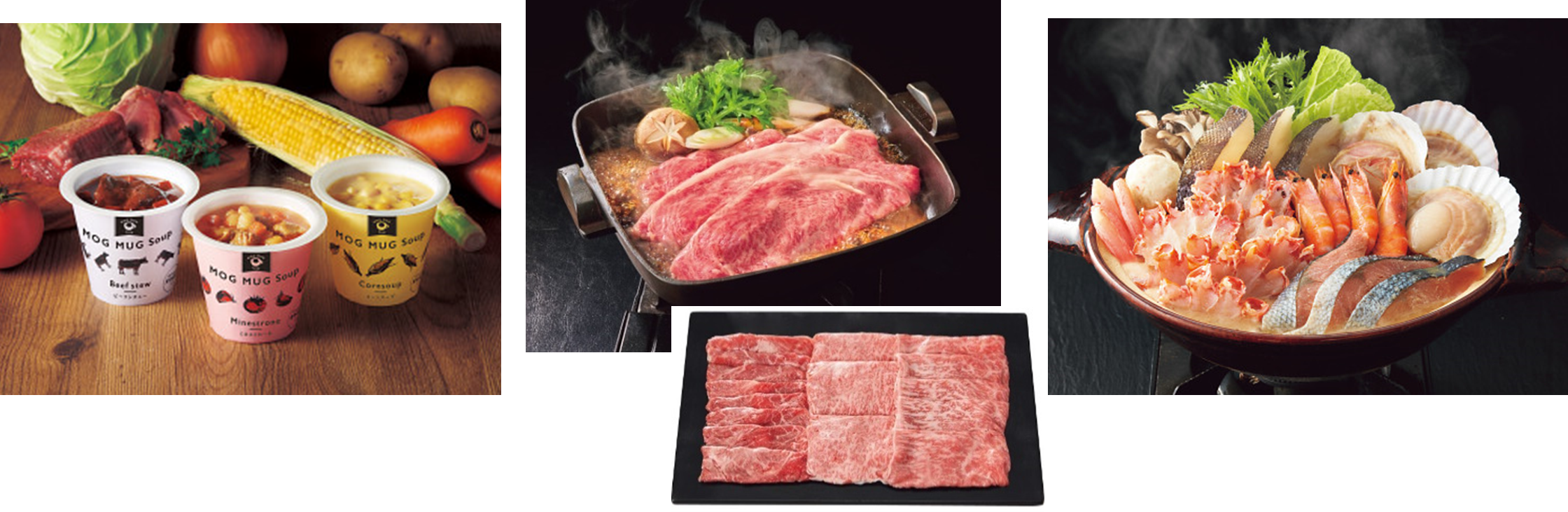 寒い季節に心も体も温まるあったかグルメを、手軽に楽しめて健康にも嬉しいスープセットから、食卓を豪華に彩るプレミアムな食材や鍋セットまで、幅広くラインナップ。また、寒い日のおやつにぴったりな、温めて美味しいほっこりスイーツも揃えています。