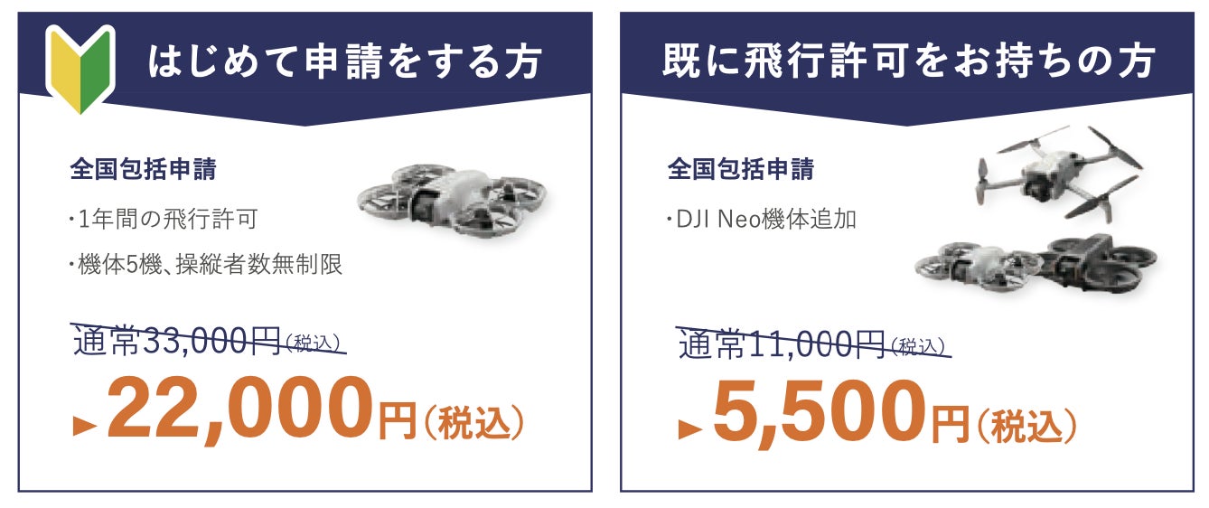 国内初販売で話題沸騰! Vlog撮影向け小型ドローン「DJI Neo」の発売を記念し、機体を購入すると飛行許可申請の代行をおトクに利用できる特別キャンペーンを期間限定で実施中。