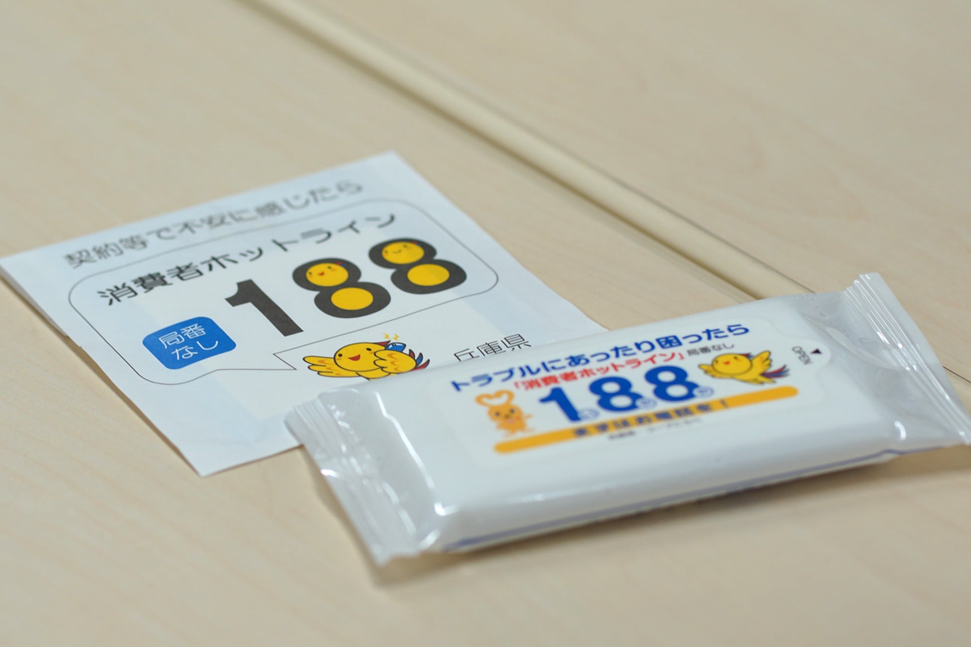 災害時にも消費者被害が増加傾向にあることを踏まえ、携行しやすく使用頻度が高い防災グッズに制作したステッカーを貼付し配布します。1月10日(金)に同センターで行われる消費生活講座、1月17日(金)に開催される「ひょうご安全の日のつどい・交流ひろば」でウェットティッシュや非常用目隠しポンチョ、災害対策お役立ちジッパーバッグを配布し、防災意識の向上と消費者被害防止啓発を行います。