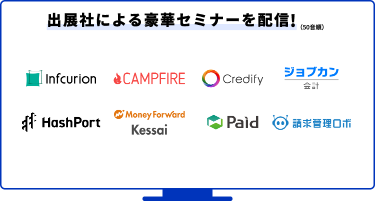 株式会社インフキュリオン/株式会社CAMPFIRE/Credify合同会社/株式会社DONUTS/株式会社HashPort/マネーフォワードケッサイ株式会社/株式会社ラクーンフィナンシャル/株式会社ROBOT PAYMENT/...他数社予定(50音順)