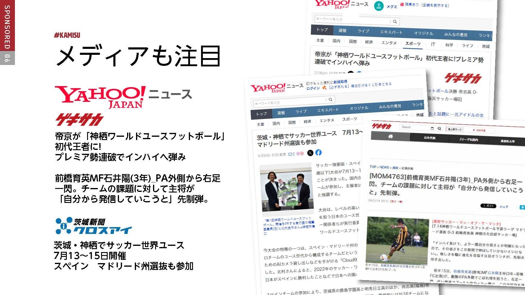 本大会は、単なるユース大会ではありません。欧州・アジア各国からの参加チームと国内強豪チームが集う国際大会として、メディアからの注目度も高く、昨年の第1回大会では地方紙やスポーツ専門メディアで大きく取り上げられました。