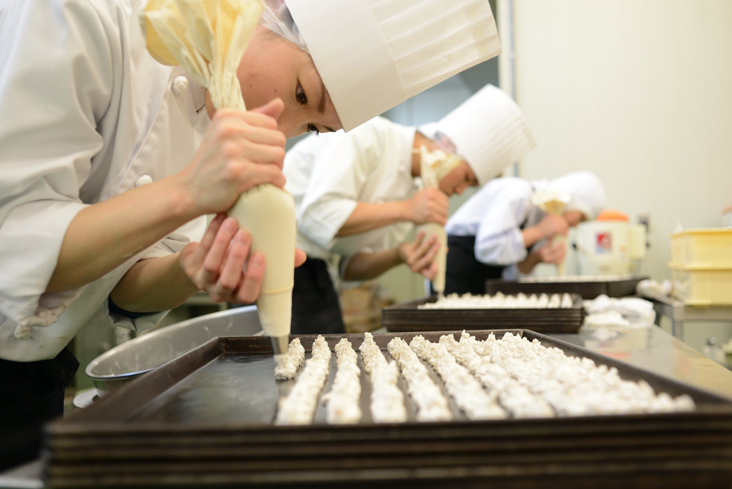 芋屋金次郎の生菓子、焼き菓子を作っているのが「スイーツ製造課」。金次郎スイーツを毎日手作りで丹精込めて作っています。金次郎の強みを最大限に生かし、芋づくしのクリスマスケーキを作りました。