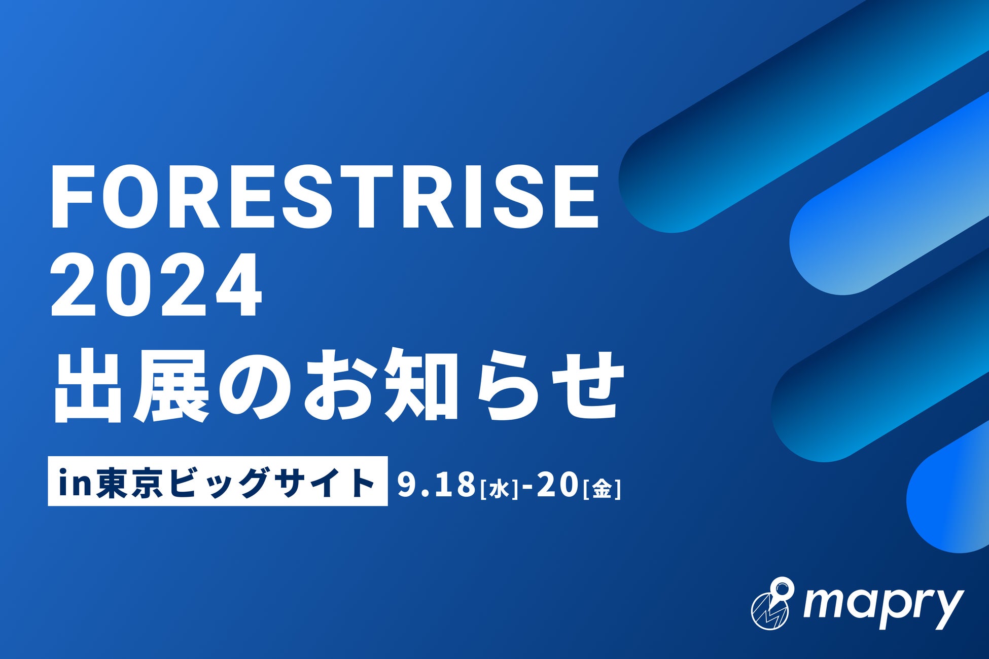 地理空間情報アプリプラットフォームサービス「mapry」を提供する株式会社マプリィ(本社:兵庫県丹波市、代表取締役:山口圭司、以下マプリィ)は、第4回次世代森林産業展「FORESTRISE2024」(2024年 9月 18日(水)~20日(金)、会場:東京ビッグサイト東1ホール)に出展します。